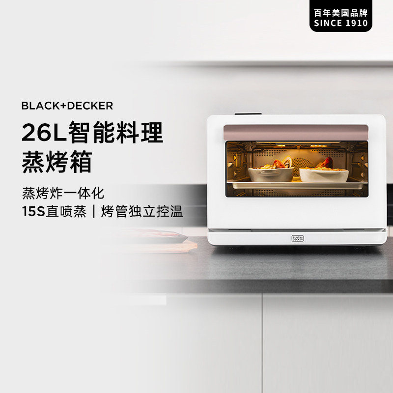 美国BLACK+DECKER台式蒸烤箱多功能智能家用烘焙蒸烤炸一体机26L