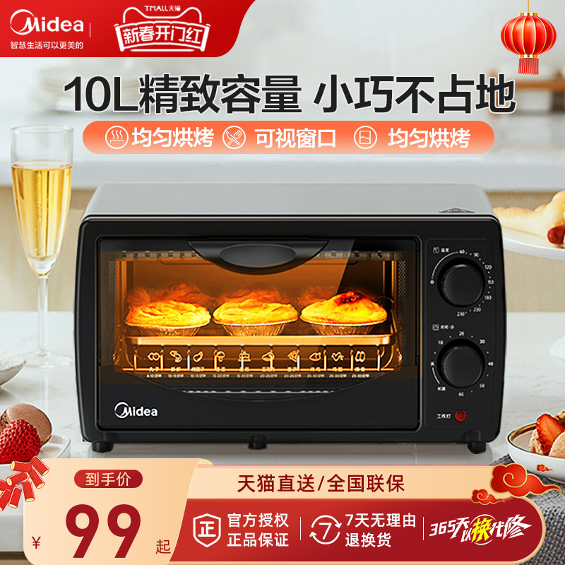 美的烤箱家用小型电烤箱10升多功能全自动迷你蒸烤烘焙机2022新款