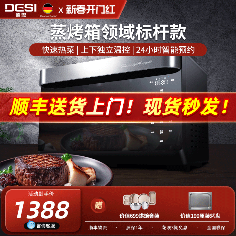 DESI德思Q9家用小型空气炸电蒸烤箱一体机大容量三合一台式蒸烤箱