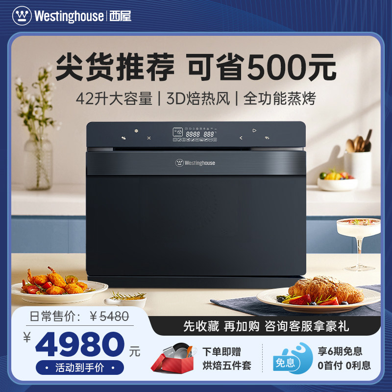 美国西屋42升蒸汽烤箱家用台式多功能蒸烤箱蒸箱二合一蒸烤一体机