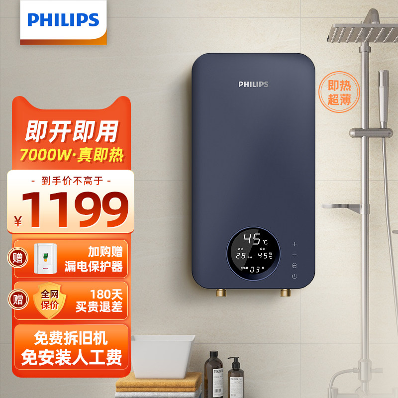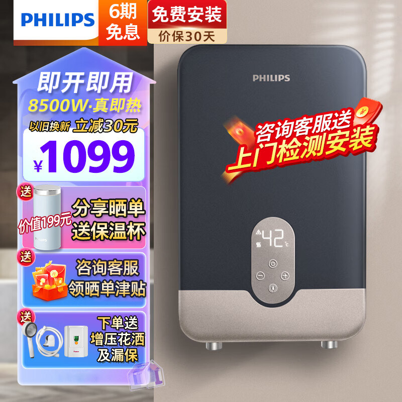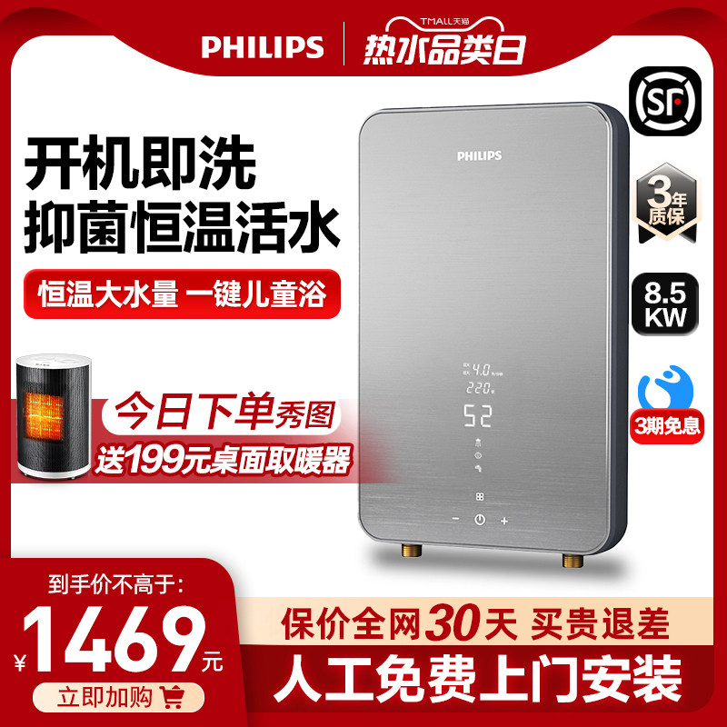飞利浦即热式电热水器家用恒温小型智能速热无极变频热水器免储水