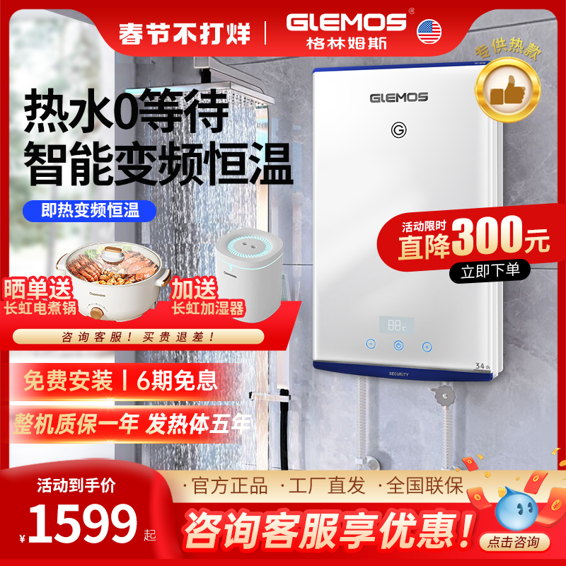 美国GLEMOS/格林姆斯ZS9速热电热水器家用卫生间储水即热式壁挂式