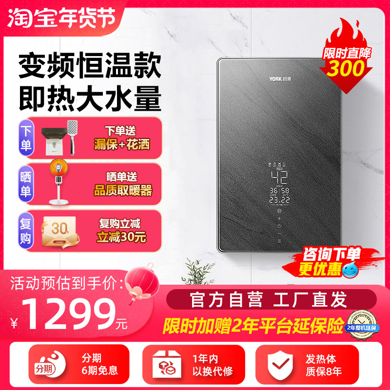 YORK约克即热式电热水器家用速热智能变频恒温免储水功率可调D2