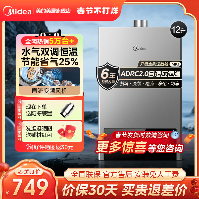 美的燃气热水器家用天然气洗澡恒温强排式12升13L16升即热MK1旗舰