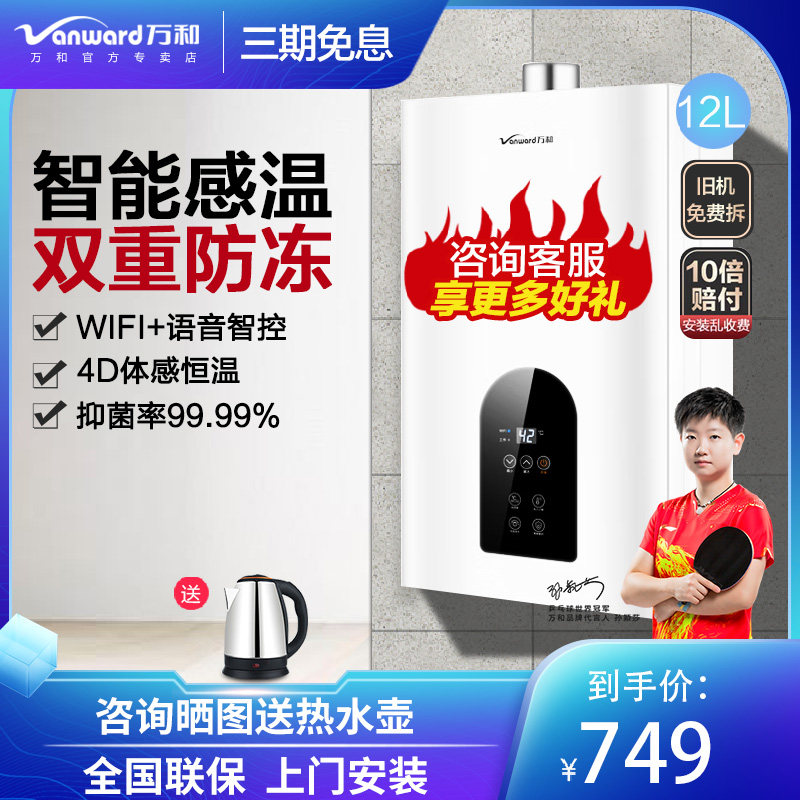 万和燃气热水器12升四季自适应感温AI防冻语音低压启动361W