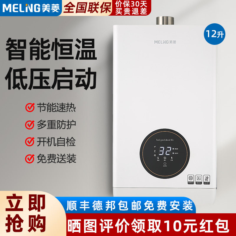 美菱家用天然气燃气热水器12升智能精准恒温低水压启动 MR-PS212G