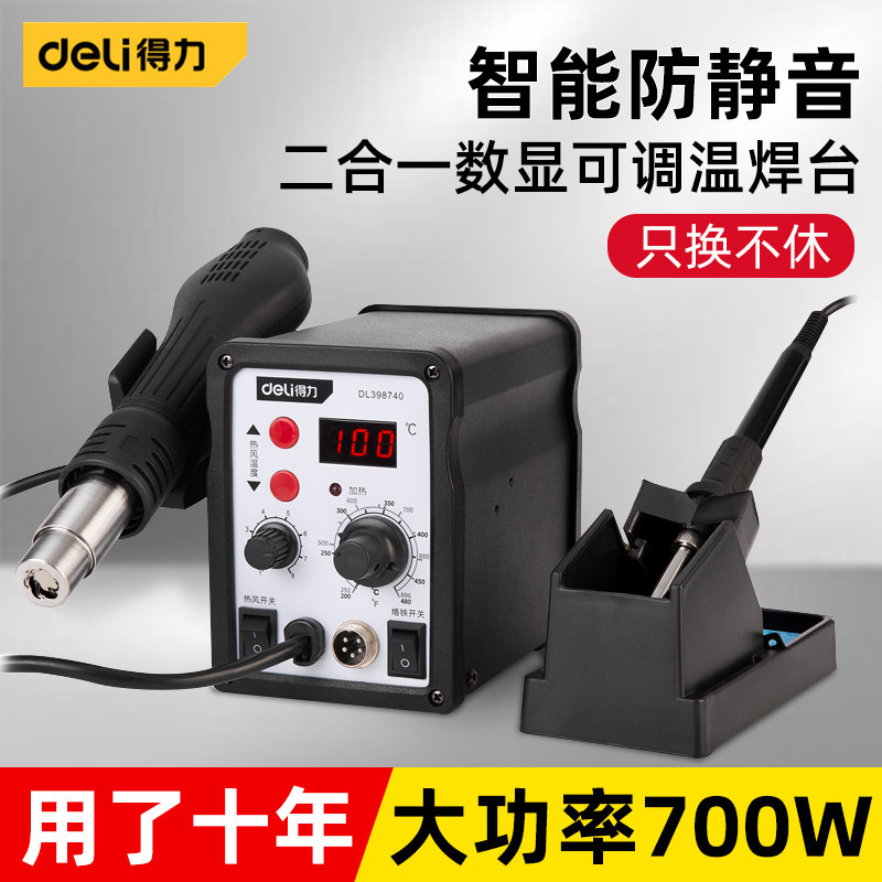 得力可调温数显焊台40W电烙铁+700W热风枪二合一套装控温恒温电焊