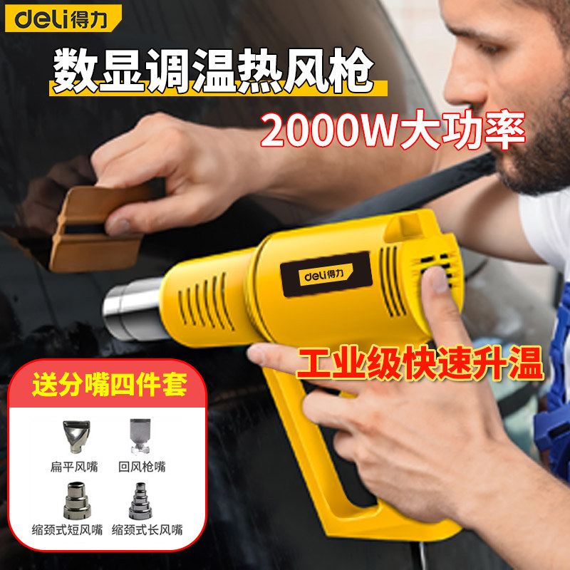 得力热风枪贴膜烤枪小型大功率工业级加热烘枪调温热缩美缝热风机