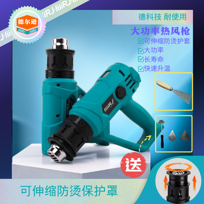 德力西吹膜热风枪小型烤枪美缝贴膜专用热缩管高温加热工业吹风机