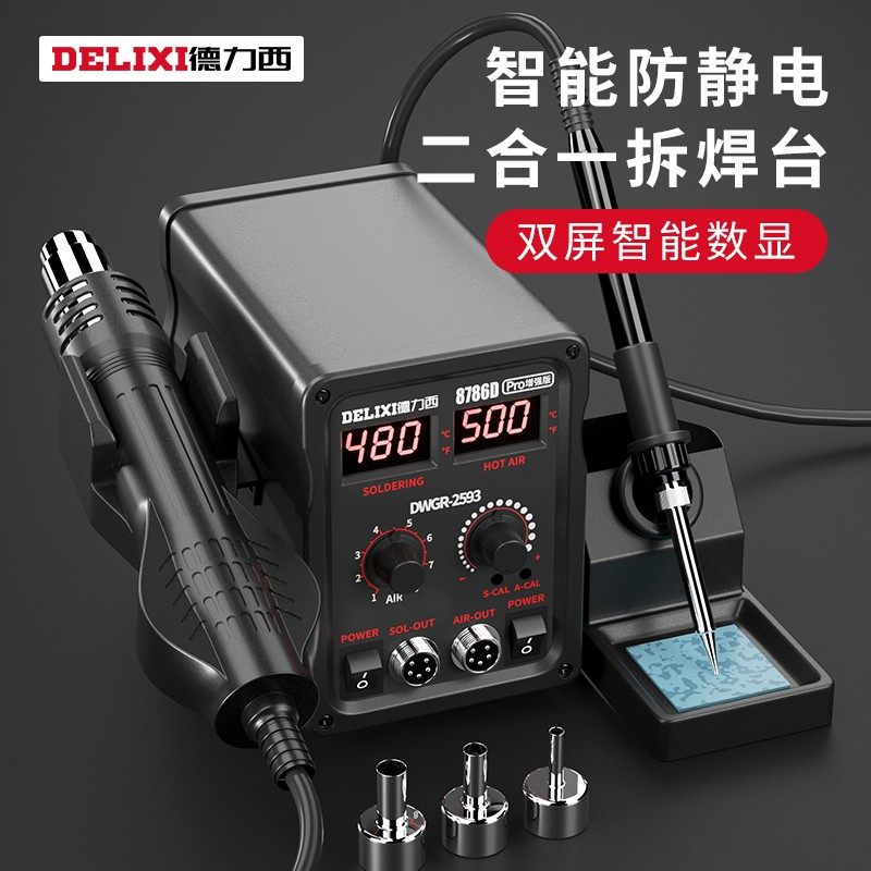 德力西热风枪拆焊台二合一858D无铅电烙铁手机电脑维修焊接电焊台