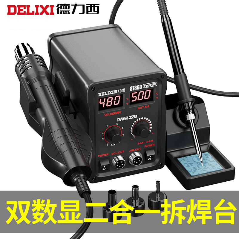 德力西双数显热风枪拆焊台二合一调温恒温858D电烙铁焊接工具套装