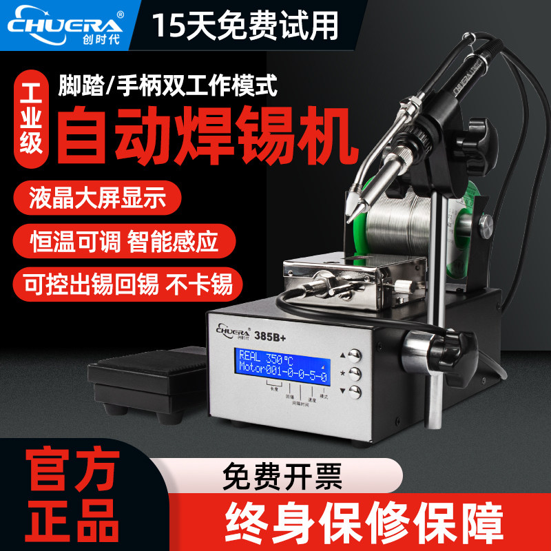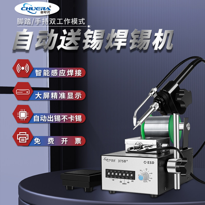 创时代375B自动焊锡机电烙铁大功率送锡枪智能可调恒温焊台脚踏式