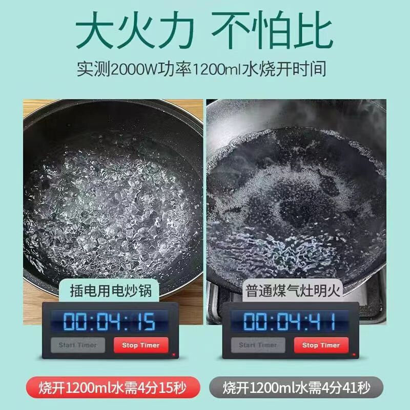 麦饭石电炒菜炒锅插电不粘锅蒸煮炒煎锅一体式大功率无油烟2000W