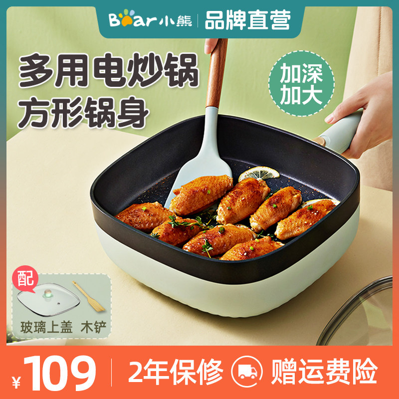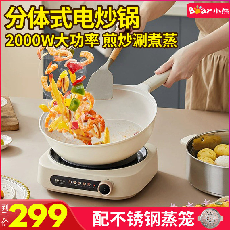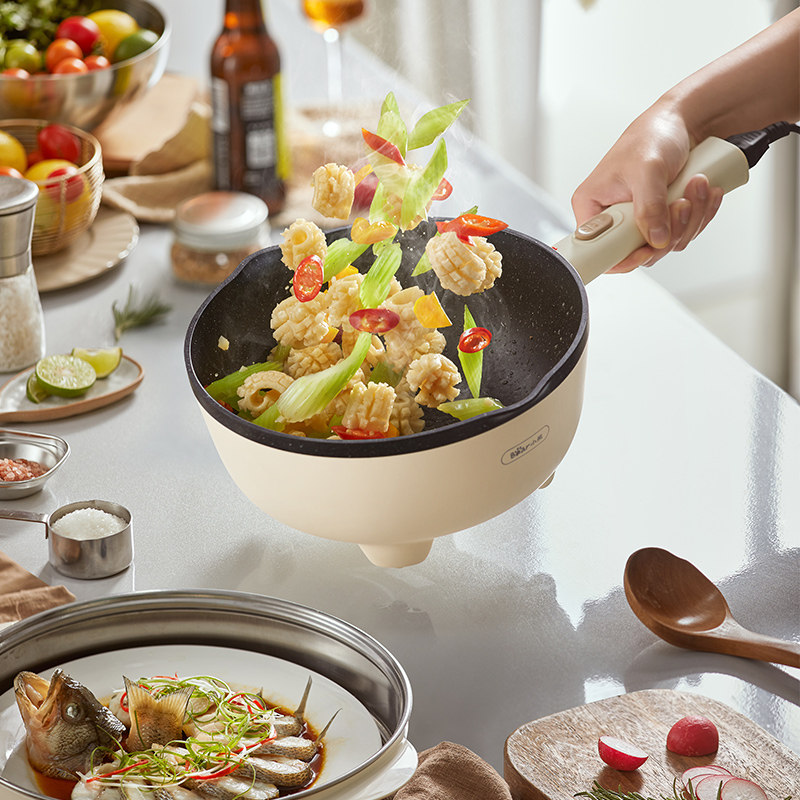 小熊电炒锅炒菜一体式插电煎锅家用宿舍多功能小型不粘锅蒸炒煎煮