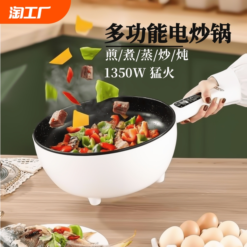 电炒菜炒锅一体式电煮锅多功能家用宿舍辅食电火蒸煮煎锅大小功率
