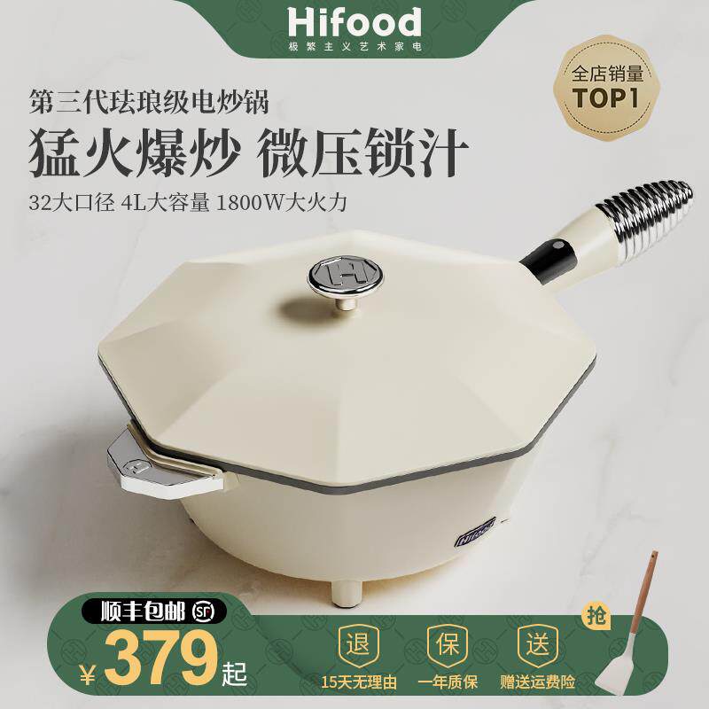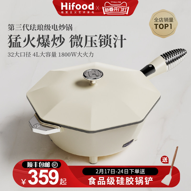 Hifood电炒菜炒锅一体式多功能电八角锅煮锅家用电煎锅陶瓷不易粘