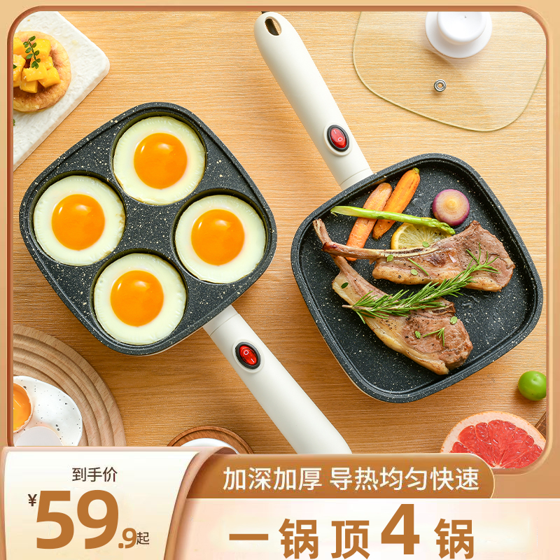 四孔煎锅不粘锅煎蛋机煎锅家用小型多功能电煎锅麦饭石四孔煎锅