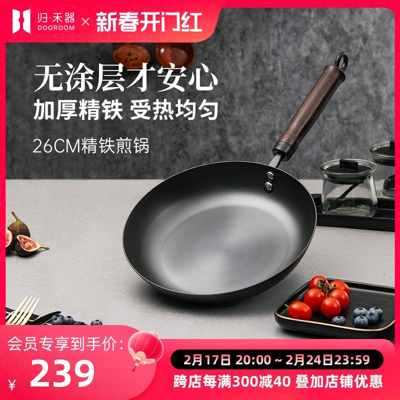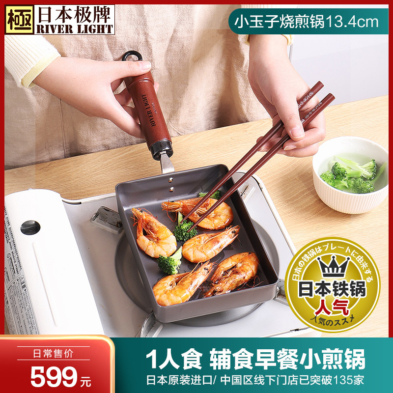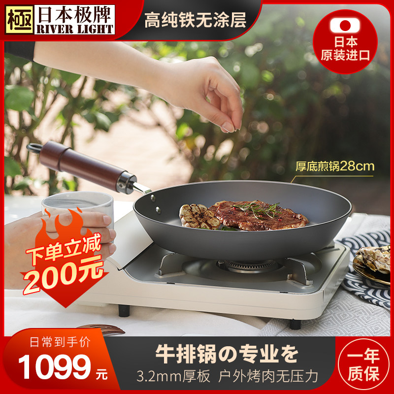 日本RIVERLIGHT极牌原装进口无涂层铁锅平底锅厚板牛排煎锅26/28