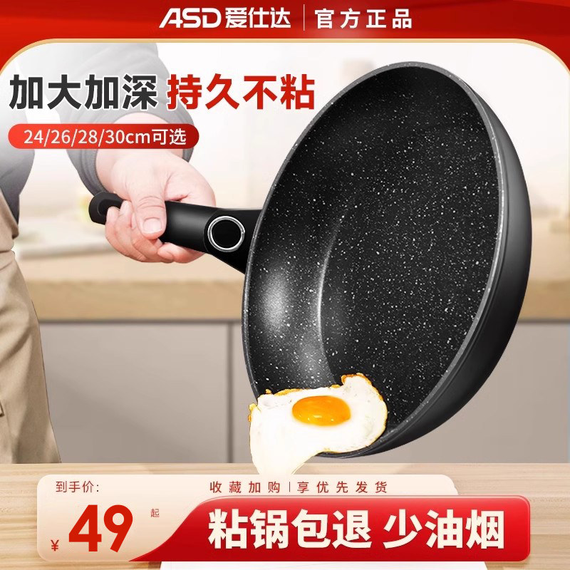 爱仕达聚油不粘锅炒锅煎锅电磁炉煤气灶家用燃气炒菜平底锅锅具