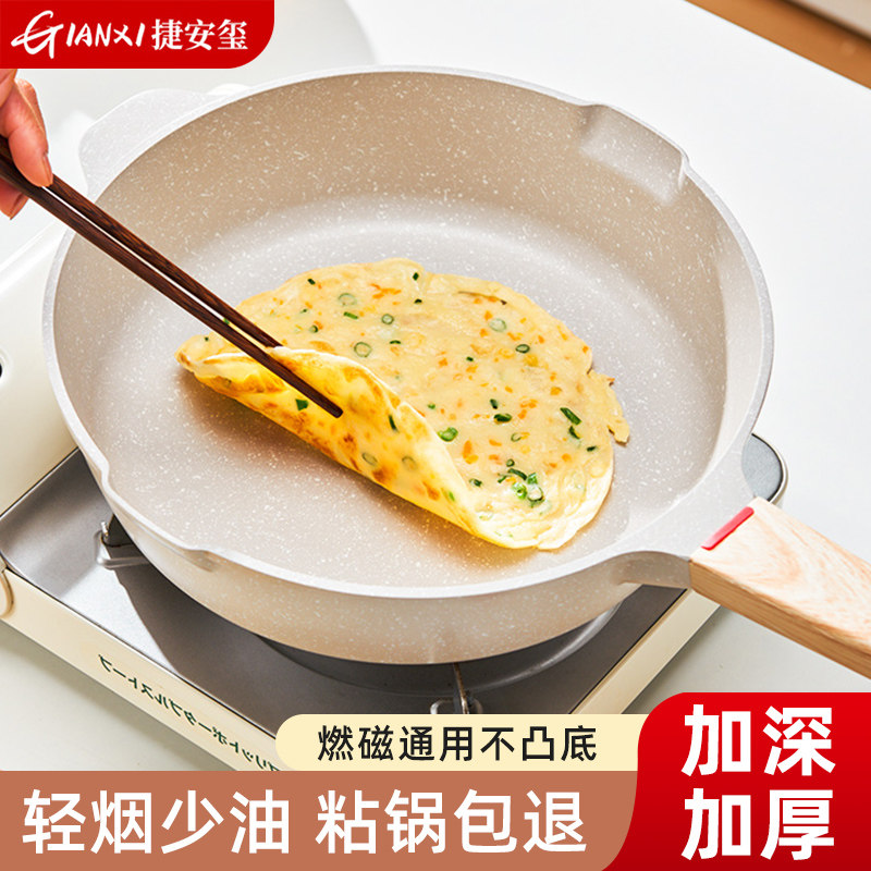 麦饭石平底锅不粘锅家用牛排煎锅煎饼炸锅电磁炉煤气灶用煎蛋神器
