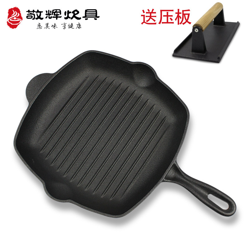 九铸铁锅牛排煎锅专用条纹煎牛排锅无涂层家用小电磁炉平底不粘锅