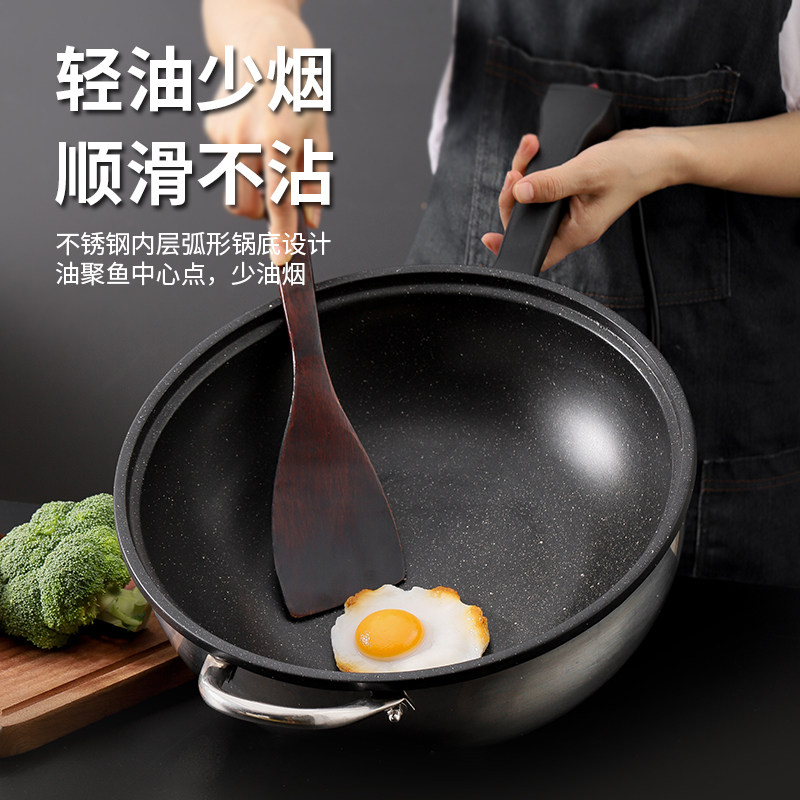 乘泰炒锅不粘锅炒菜锅无烟电煎锅多功能家用不锈钢电磁炉一体不沾
