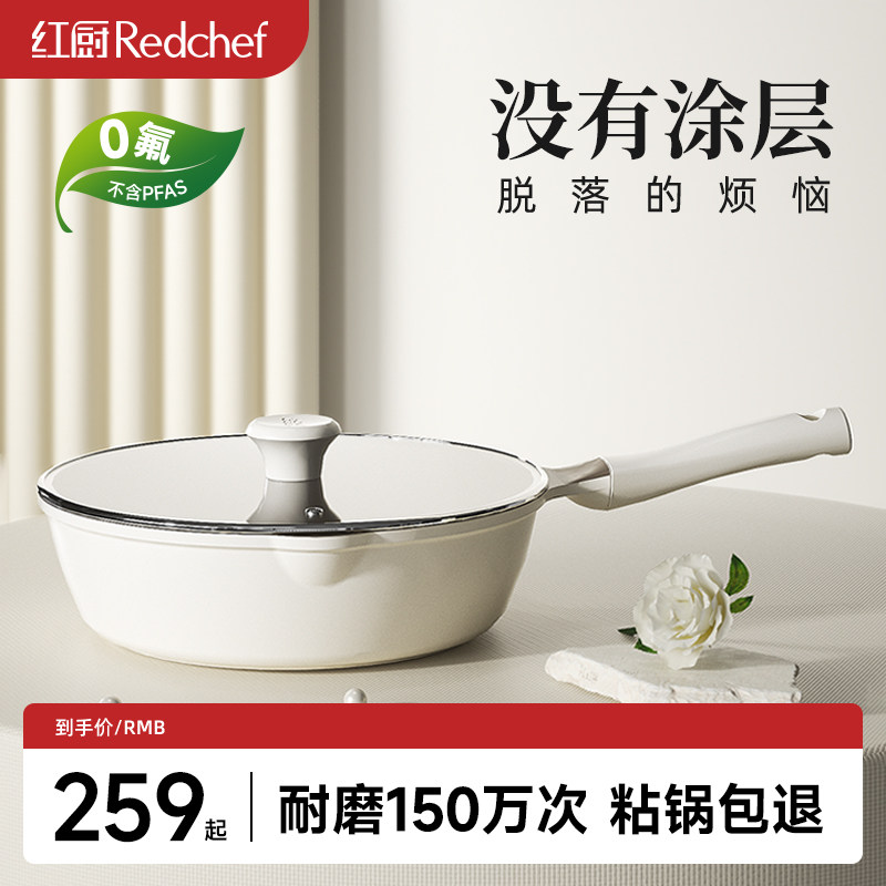 铿锵316不锈钢平底锅无涂层加深电磁炉不沾煎锅家用炒菜锅小24cm