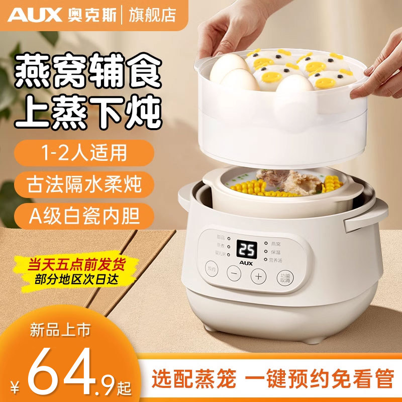 奥克斯电炖锅宝宝煮粥锅bb煲汤燕窝电炖盅隔水炖家用电炖锅陶瓷