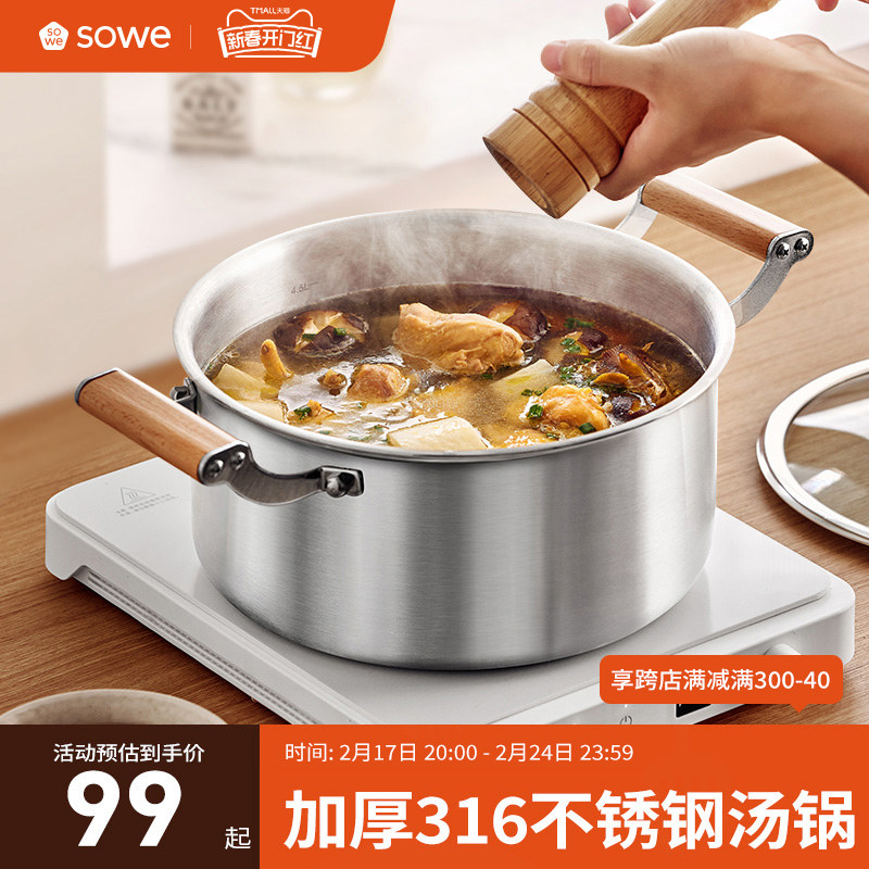 汤锅316不锈钢加厚家用奶锅煮粥锅煮锅锅具燃气电磁炉炖锅无涂层