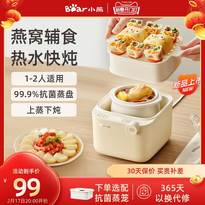 小熊电炖盅隔水炖辅食燕窝小炖锅电炖锅陶瓷全自动煮粥锅家用煲汤