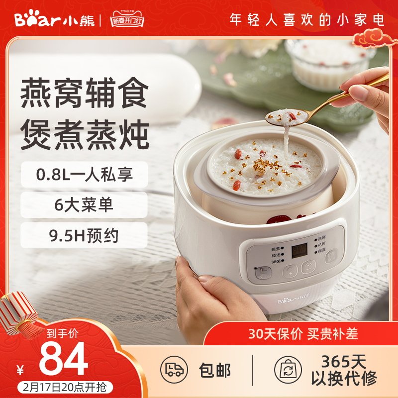 小熊宝宝煮粥锅婴儿辅食锅bb煲汤燕窝电炖盅隔水炖家用电炖锅陶瓷