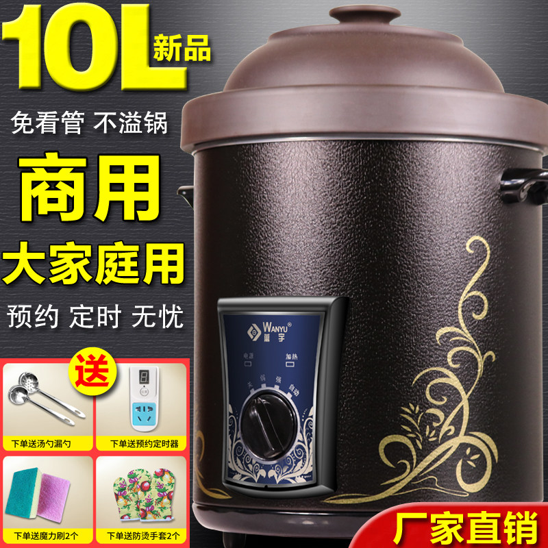 万宇紫砂锅红陶电砂锅商用大容量煮粥煲汤锅家用不锈钢电炖锅10L