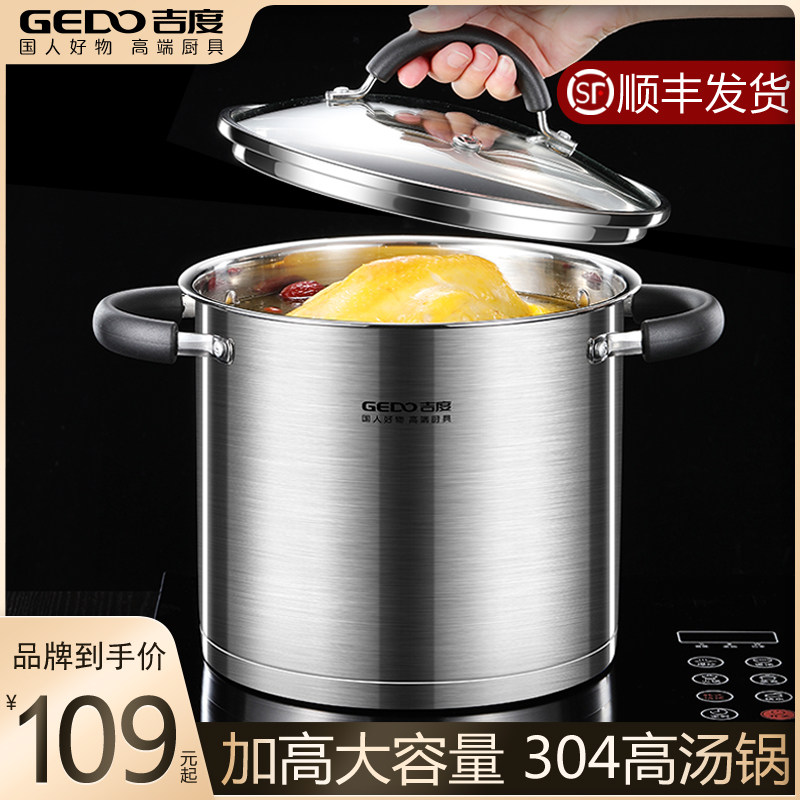 吉度高汤锅304不锈钢家用加厚大容量煲汤熬粥蒸煮炖锅电磁炉煮锅