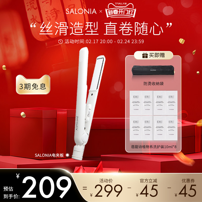 SALONIA电夹板直发负离子拉直板陶瓷夹直发器刘海两用卷发棒熨板