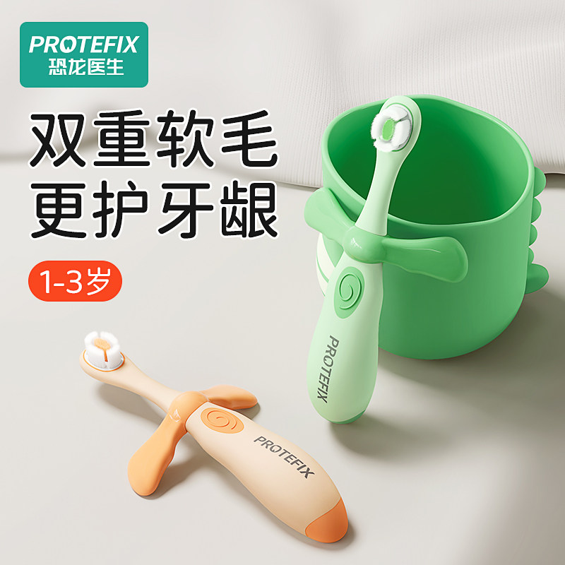 恐龙医生宝宝牙刷婴幼儿0一1-2到3岁半软毛两儿童专用牙膏三刷牙