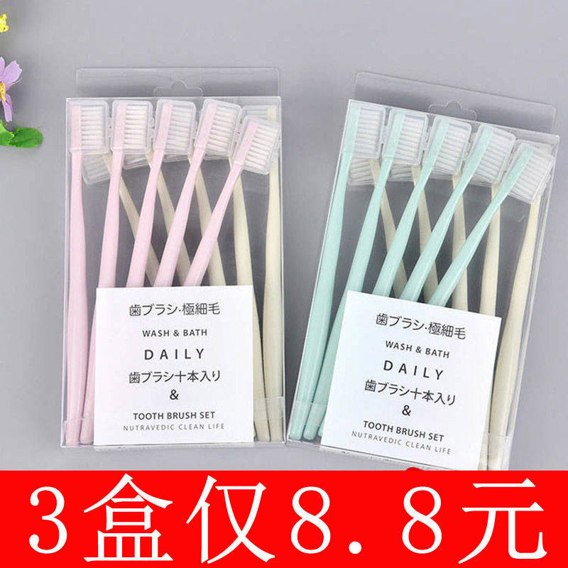 牙刷软毛大人成人家用家庭装小头超细超软情侣女生男士专用10支装