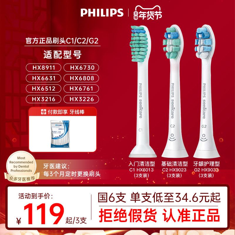 飞利浦电动牙刷头HX9033替换头HX6730HX3226HX6721通用官方9023