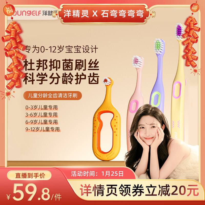 【弯弯推荐】洋精灵3-6-12岁儿童全齿牙刷婴幼儿宝宝护齿清洁专用