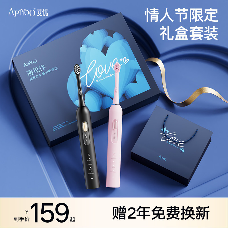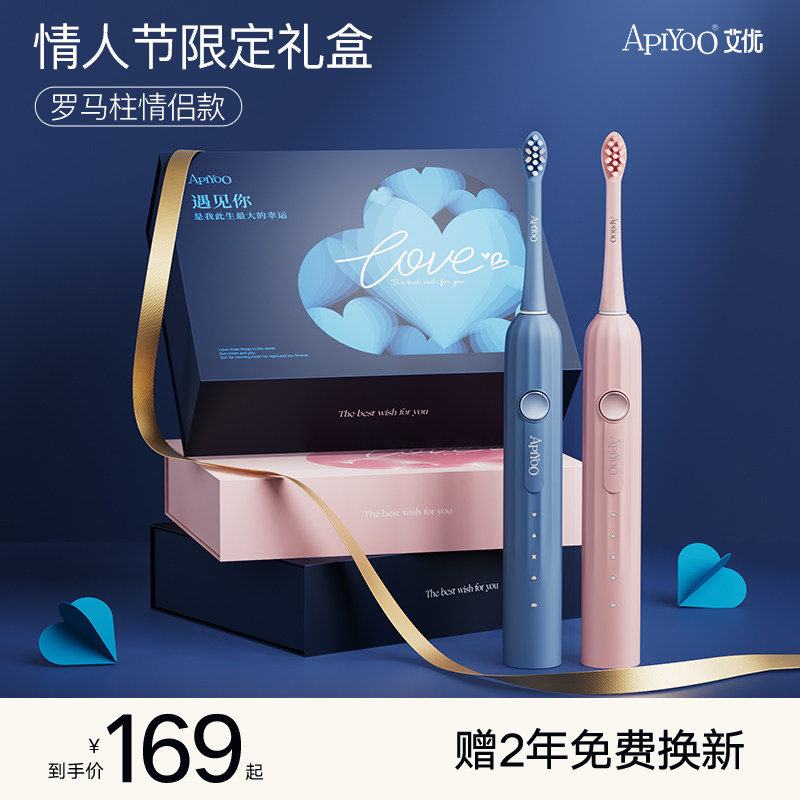 apiyoo艾优电动牙刷成人男女款情侣全自动软毛情人节礼物礼盒套装