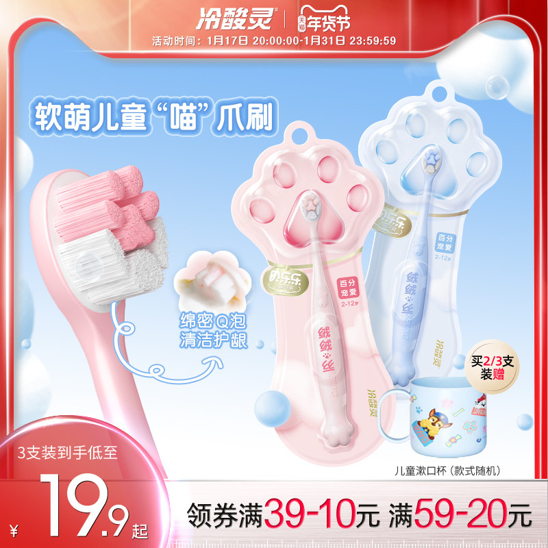 冷酸灵猫爪儿童牙刷2一6一12岁儿童软毛牙刷清洁护龈旗舰店正品