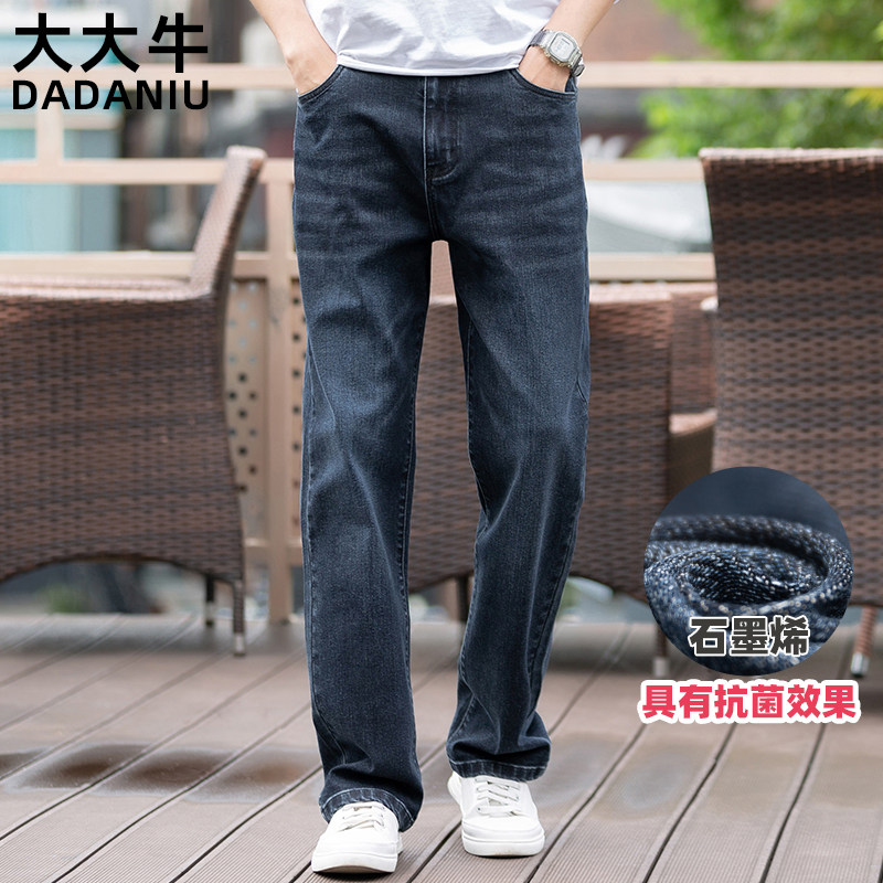 大大牛 高端面料石墨烯牛仔裤男弹力直筒宽松阔腿高腰大码秋冬款