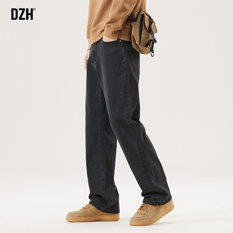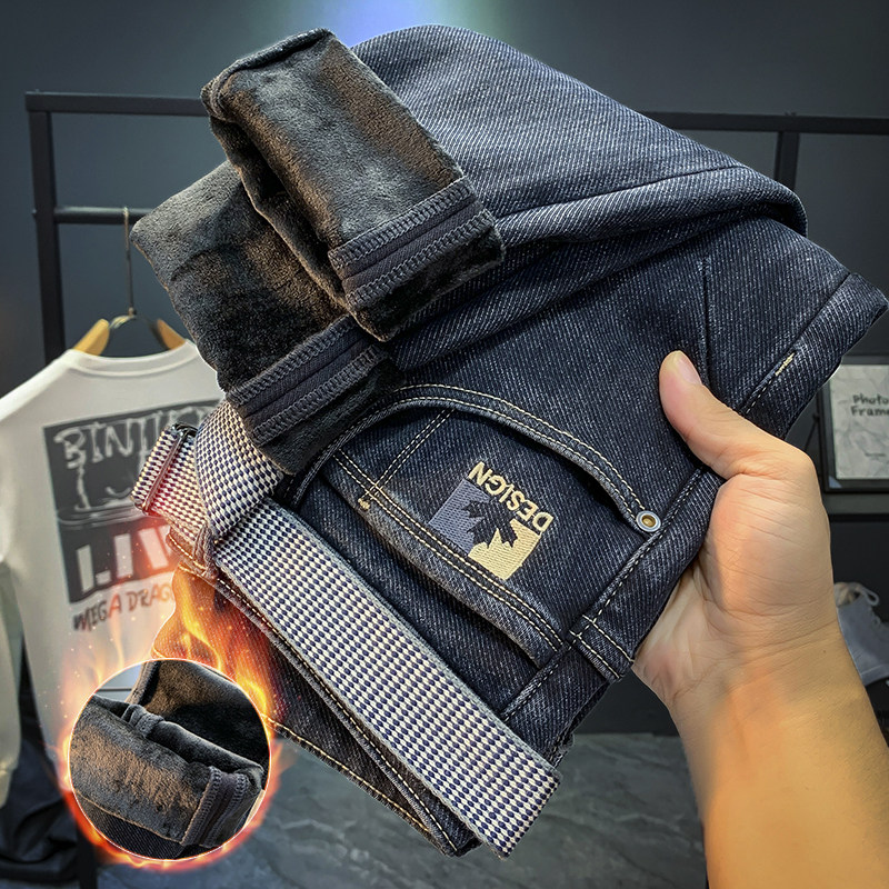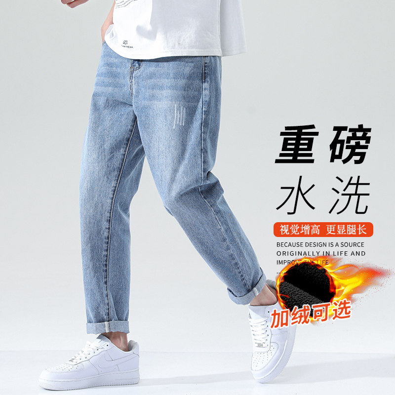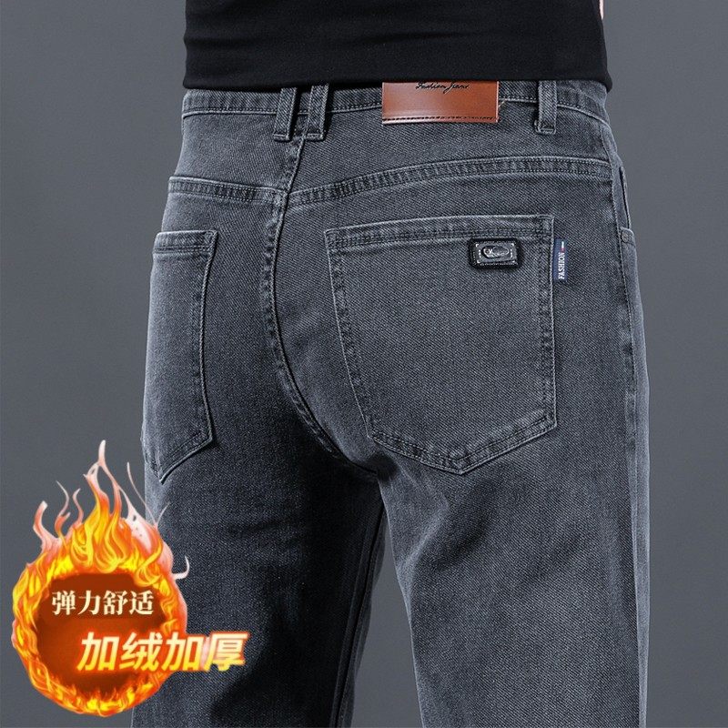【高品质】弹力直筒牛仔裤男秋冬加绒宽松休闲百搭美式休闲长裤子