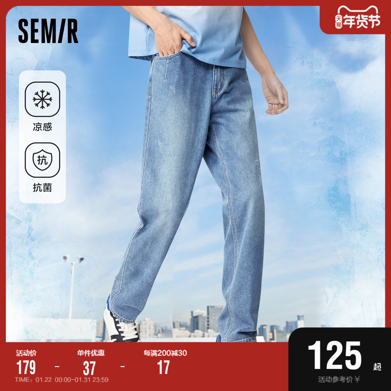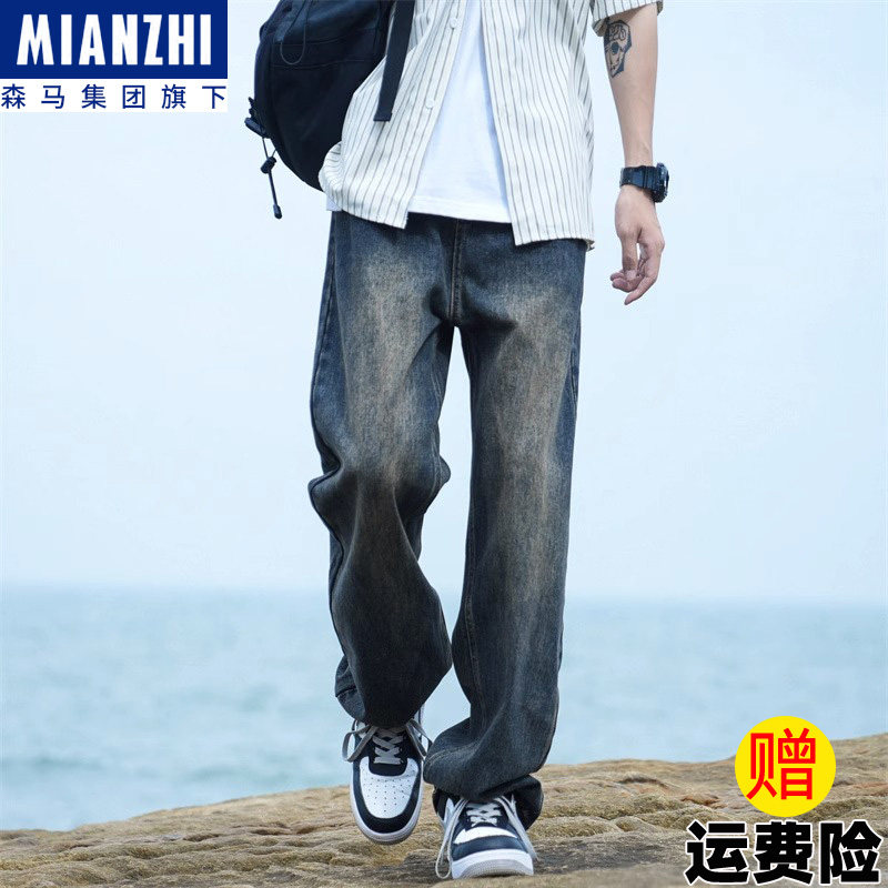 森马牛仔裤男2023新款凉感休闲复古潮流男款裤子宽松锥形修身长裤
