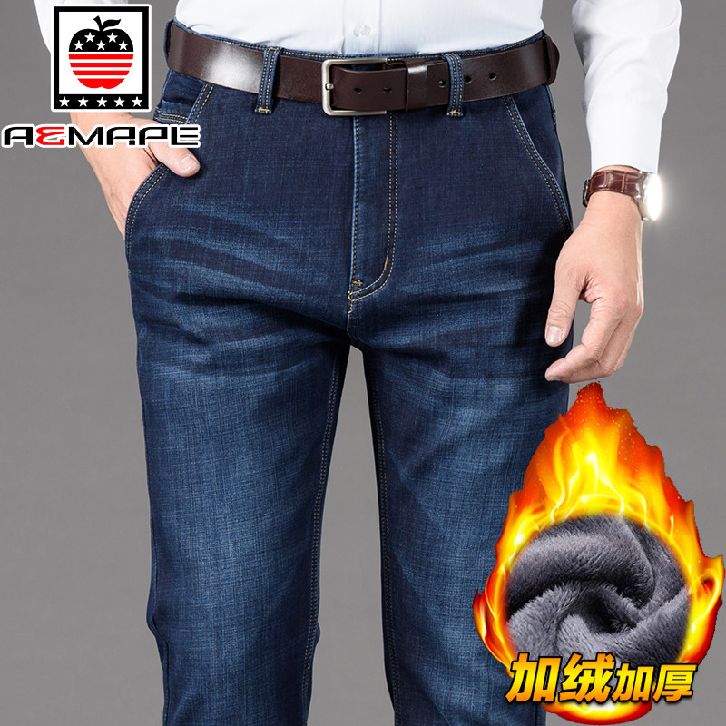 2023秋冬款加绒加厚保暖牛仔裤男宽松直筒商务中年男士弹力春秋