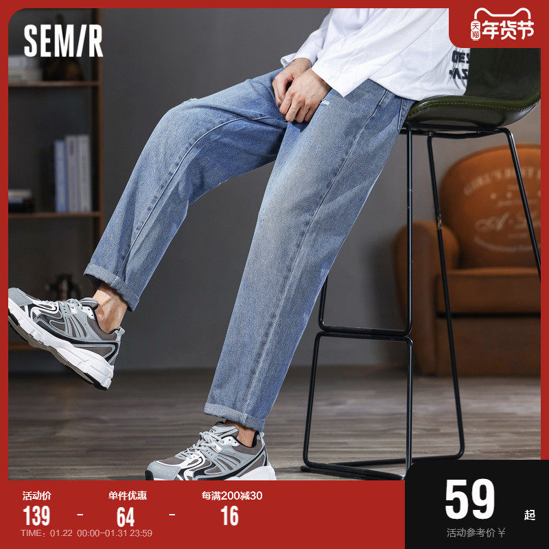 森马牛仔裤男春秋纯棉活力休闲帅气男生裤子时尚宽松锥形破洞长裤