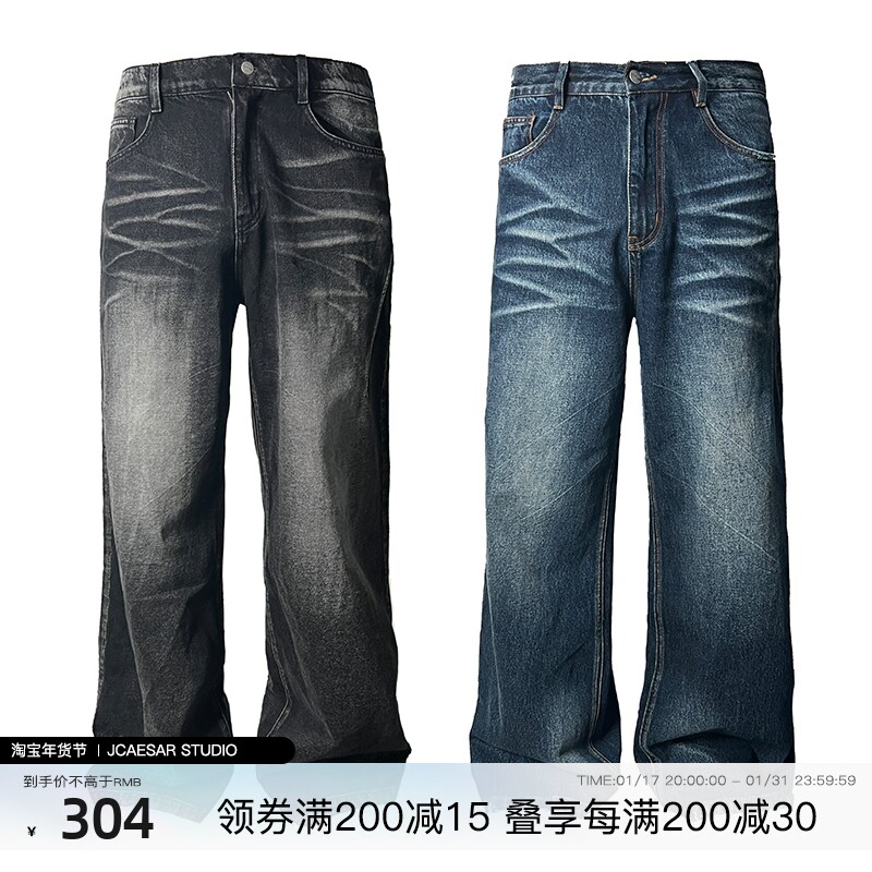 JCAESAR GREASE DIRTY DENIMS 重度油污脏染牛仔裤 立体猫须 14oz