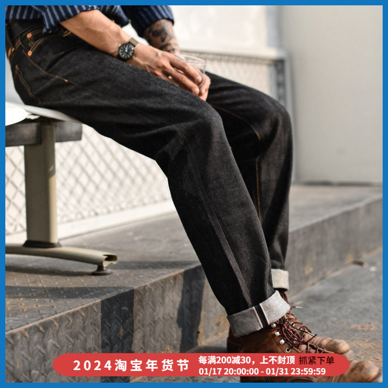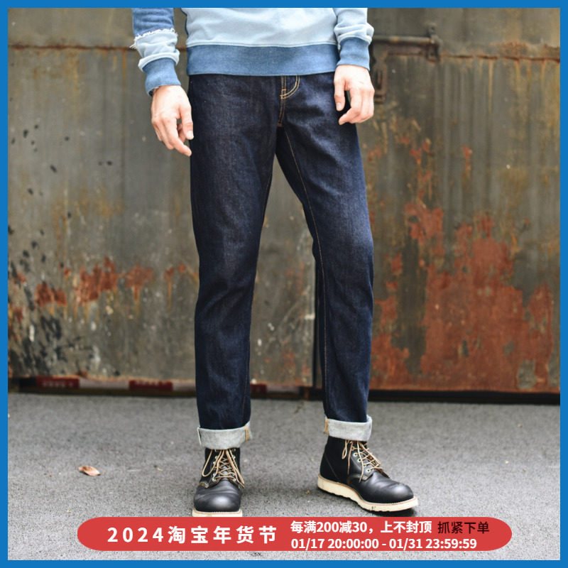 沾酱314XX新疆棉 拉链牛仔裤男士修身长裤 潮男装原牛 赤耳 丹宁