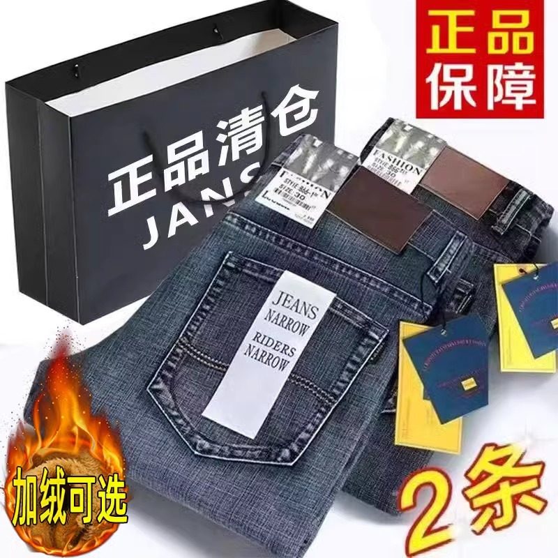 秋冬款牛仔裤男士直筒宽松弹力中年休闲高端深裆新款加绒长裤子男