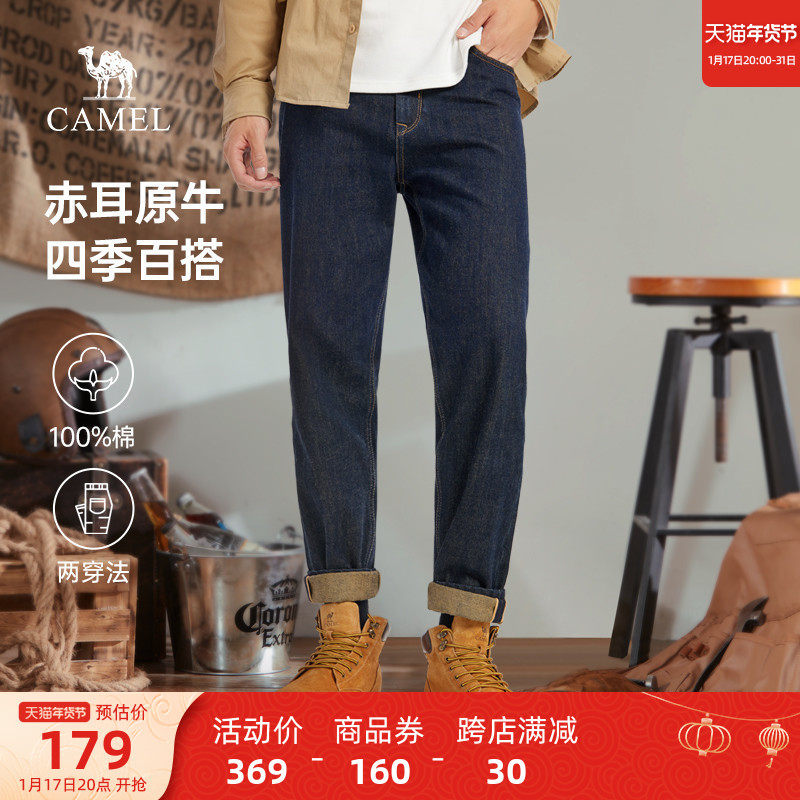 骆驼男装纯棉牛仔裤男款2023春秋复古宽松直筒裤休闲长裤工装裤男
