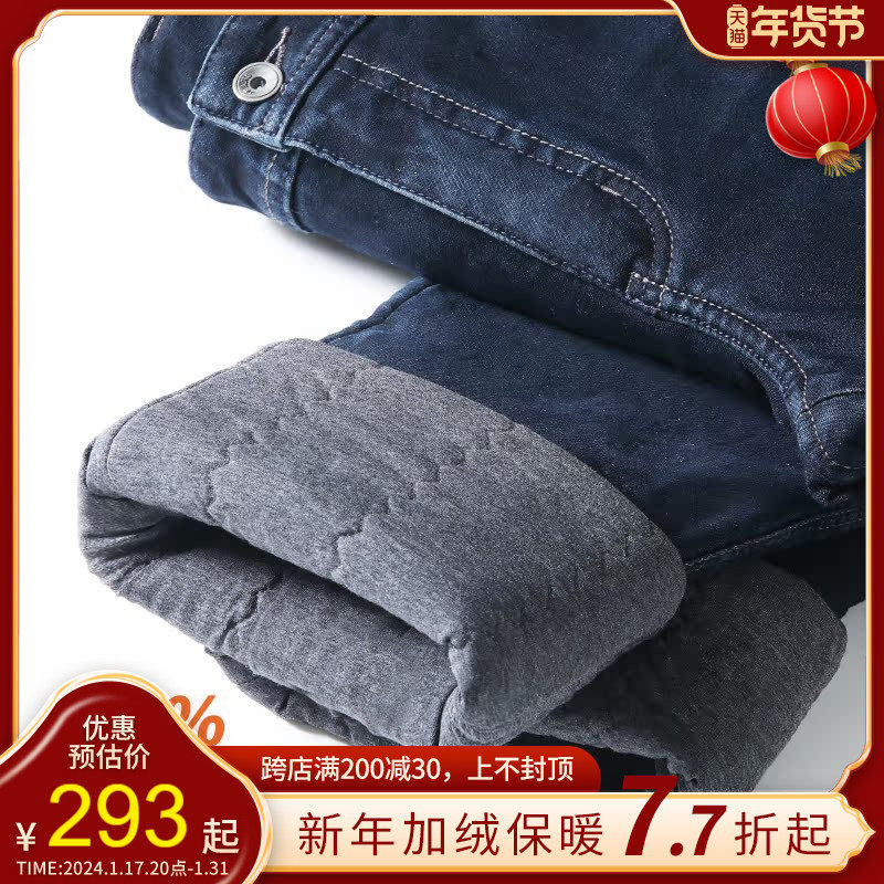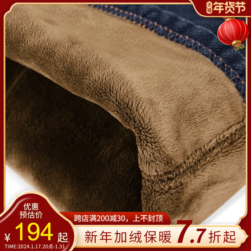 捷纯冬季加绒加厚牛仔裤男冬长裤男士高腰休闲裤子弹力宽松保暖裤
